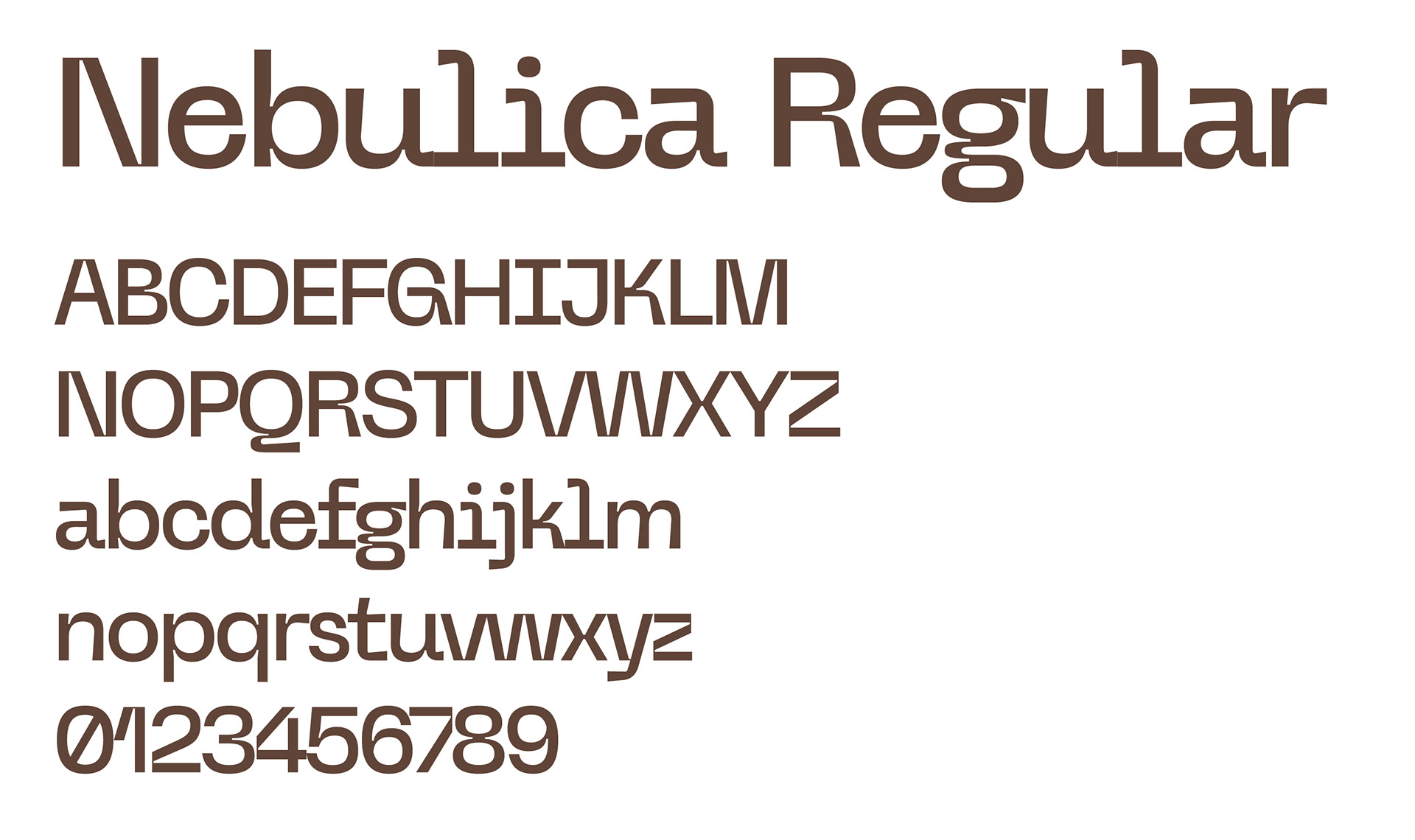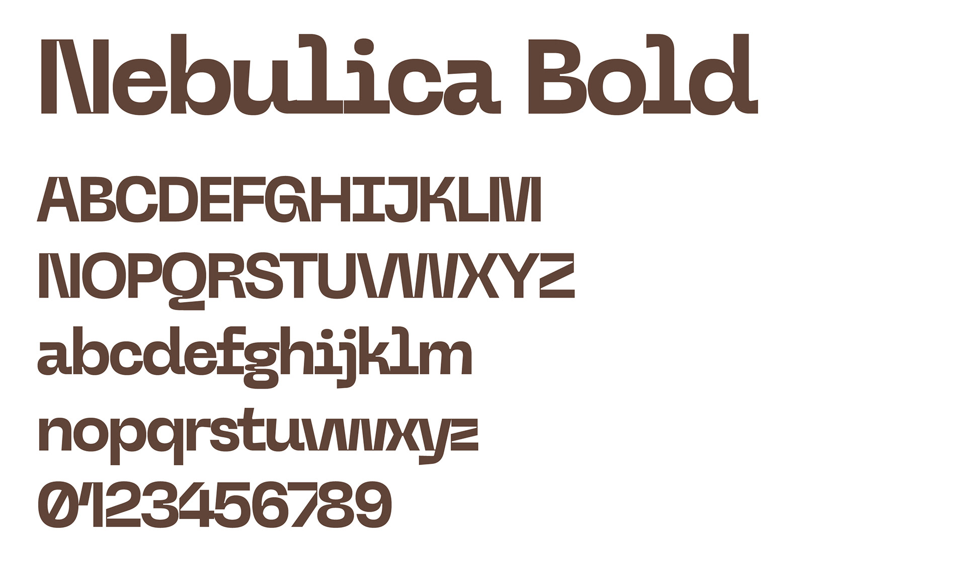 Nebulica is the secondary typeface. Nebulica Bold is used for section titles or subheaders, while Nebulica Regular is used for body text. Nebulica is a contrasting pairing to Bear Rounded with its sharp corners, but also reinforces the Swiss-Style design with its clean and geometric look.